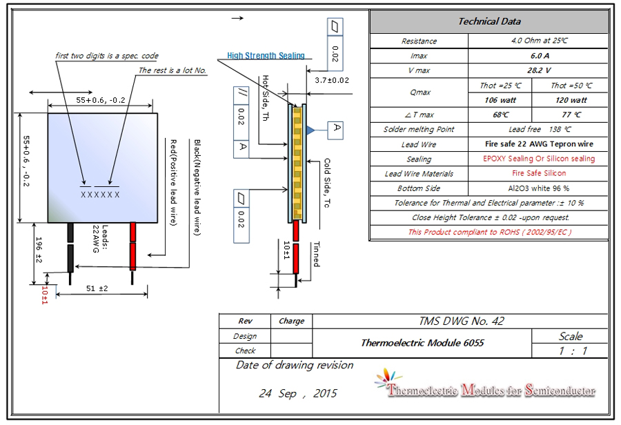 당사의 열전소자는 습기 침투 및 열전소자 내부의 금속간의 부식에 의해 발생하는 열전소자의 합선 문제를 근본적으로 해결한 열전소자로서