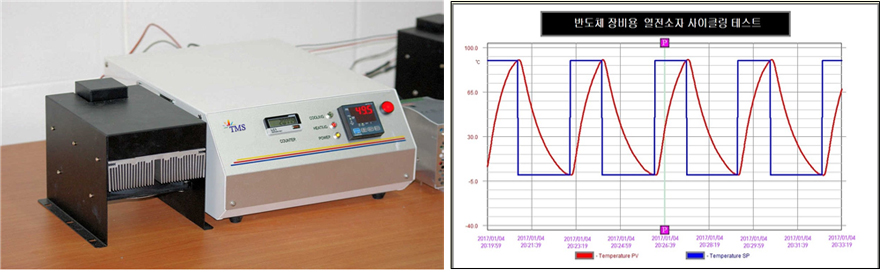 이에 따라 열전소자의 내구성 검증을 위한 방법에는 다양한 시스템이 있으나 열전소자에 사이클링 테스트를 통해 전기적인 충격과 열적충격을 가하면서 내구성 검증을 하는 것이 일반적인 방법 입니다.
